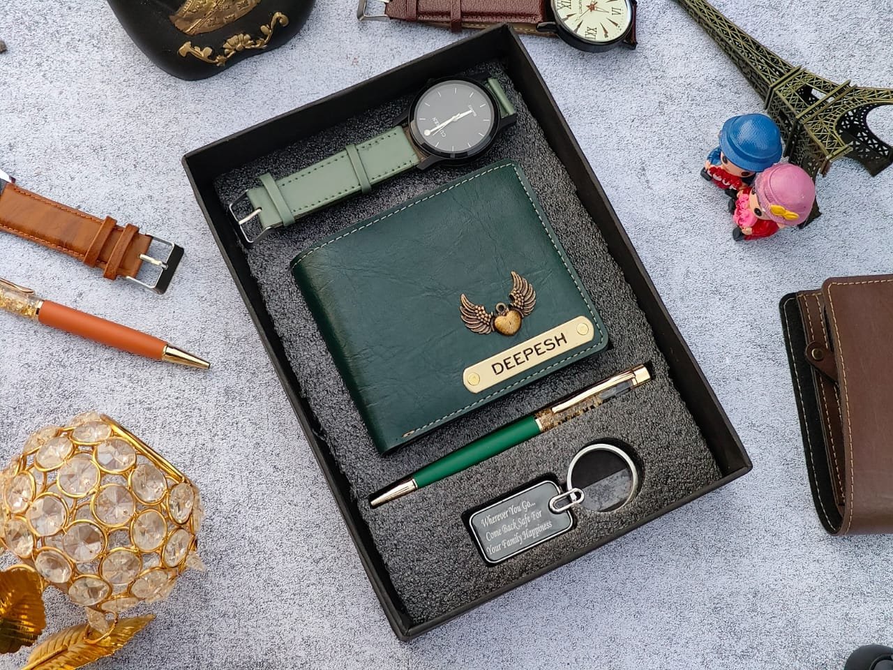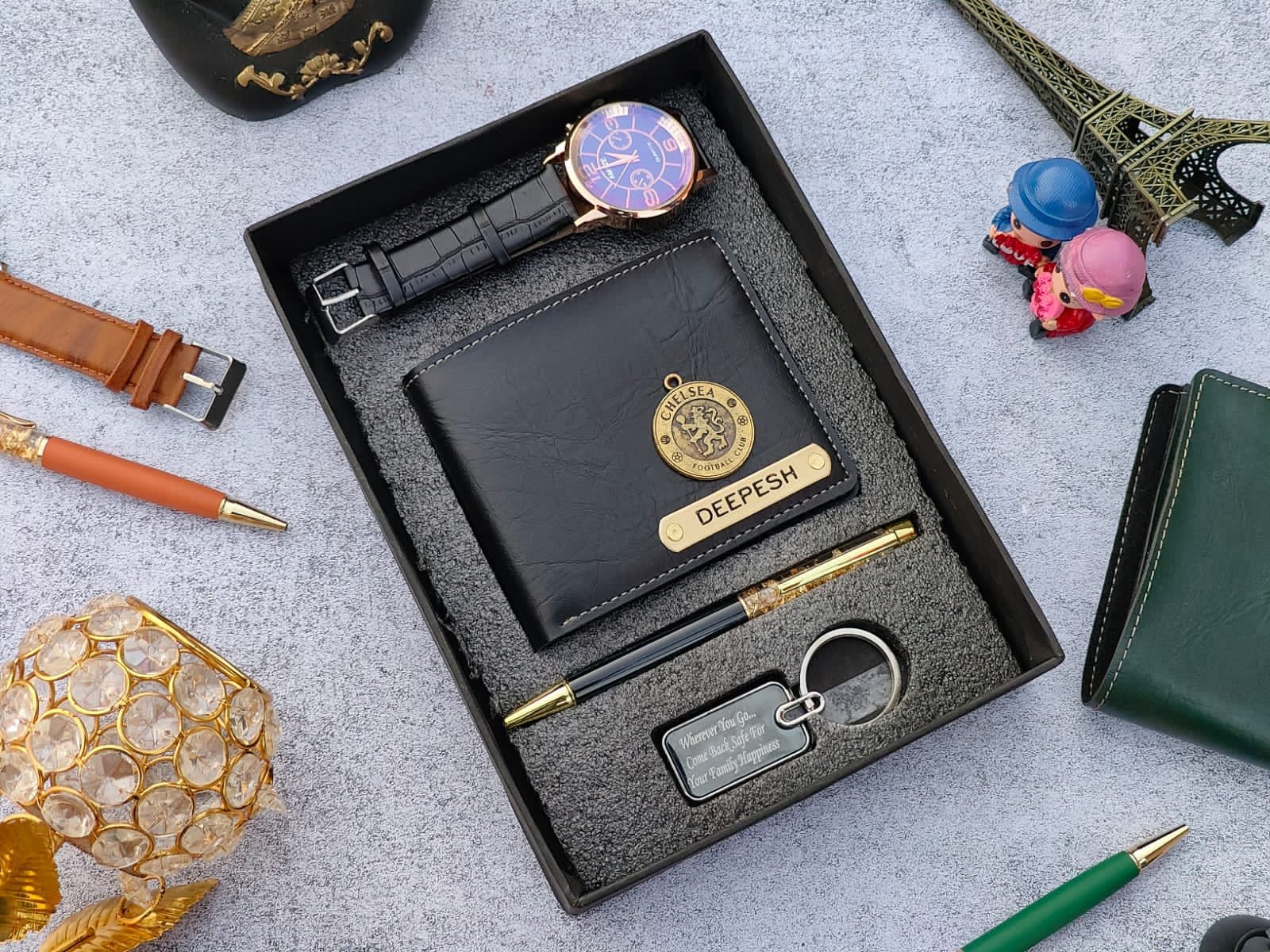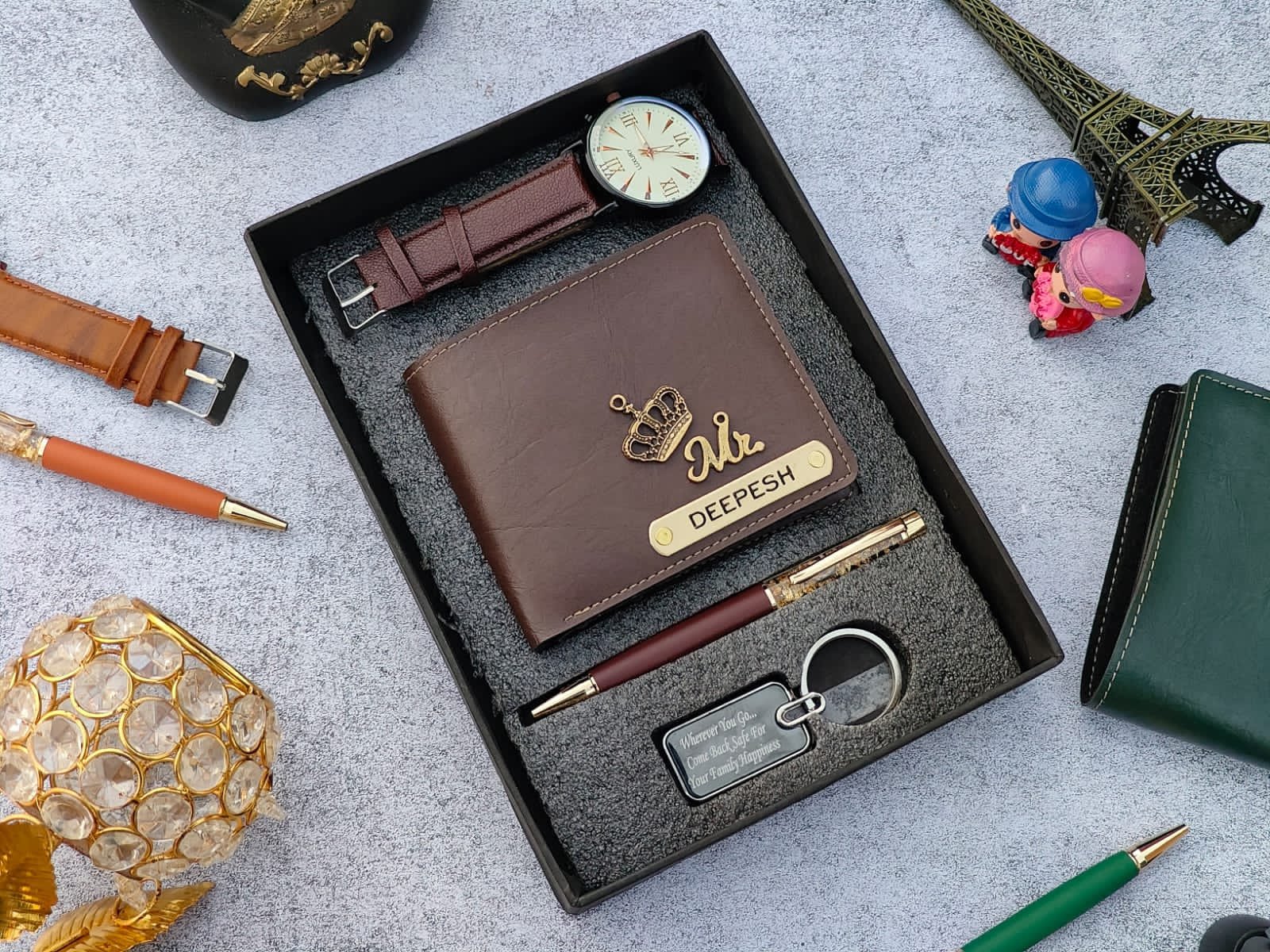 ⭐scope of any name can be customised on wallet and pen , and any text can be customised on Keychain